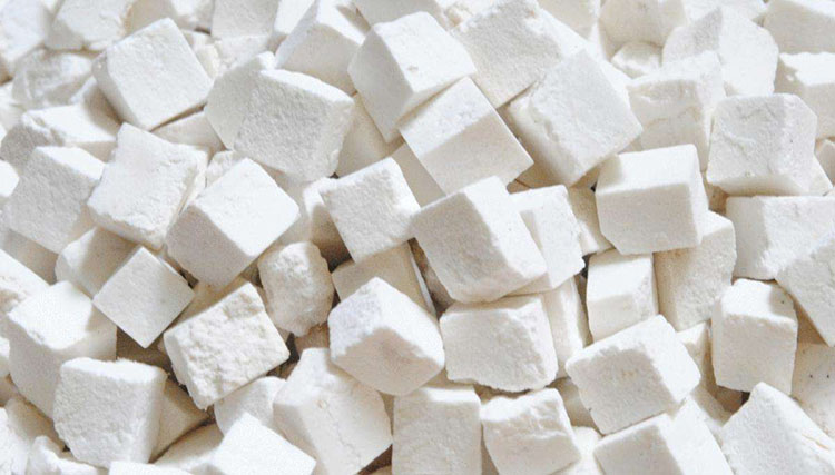 茯苓片采用的復(fù)烘方式,溫度點(diǎn)控制在41度-45度之間,烘干8小時(shí)后停機(jī),主機(jī)靜止2小時(shí),使茯苓片中心水分自然外移后進(jìn)行復(fù)烘7小時(shí)完成整個(gè)批次,茯苓丁比較容易開(kāi)裂,所以烘干的溫度控制在35度以下,除濕量按照階梯濕量進(jìn)行循序下降的方式,中間需要插入幾段冷風(fēng)的形式,讓茯苓丁進(jìn)行冷卻和收縮,然后采取烘干和冷卻交替的方式完成,這樣茯苓丁的開(kāi)裂比例將會(huì)縮小到一定范圍。
